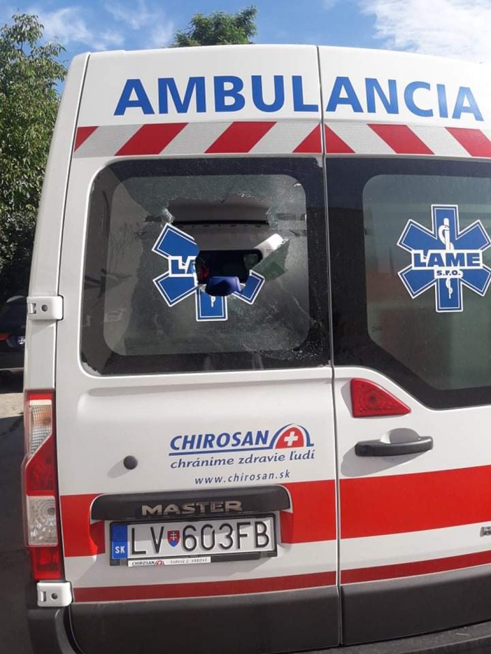 Dnes ráno malo toto jeden rok staré vozidlo transportovať pacientov na onkológiu. Svojou hlúposťou páchateľ ohrozil ľudské životy.